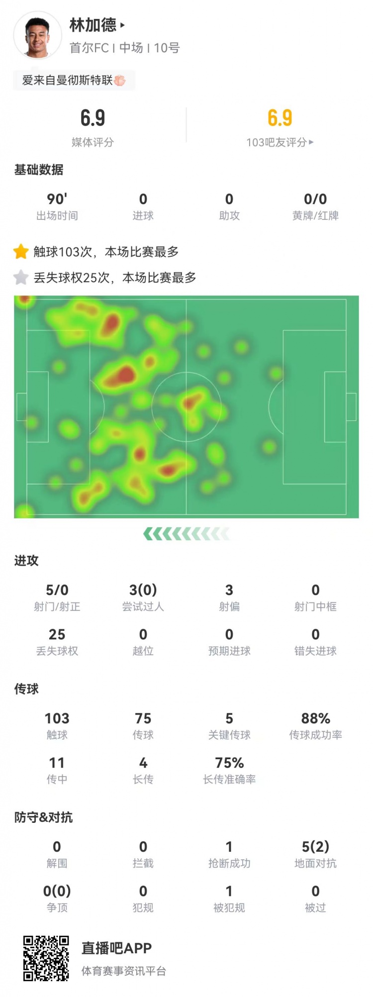 10月22日讯 10月22日,亚冠精英联赛东亚区第3轮,上海申花主场2-0击败首尔FC。首尔FC外援林加德本场比赛踢满全场,5脚射门0射正,3次尝试过人均未成功,丢失球权25次。